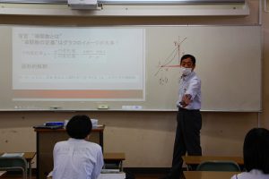 本日は、前田陽先生による数学Ⅲ「微分」、岩﨑先生による地理B「氾濫原」の授業が公開されました。どちらも、ICTを活用し、生徒の思考を深めたりやる気を高めたりする工夫がありました。GIGAスクール構想が始まり、DXに対応した人材育成も必要となっています。ICTを通して徐々に授業改善が進んでいるようです。