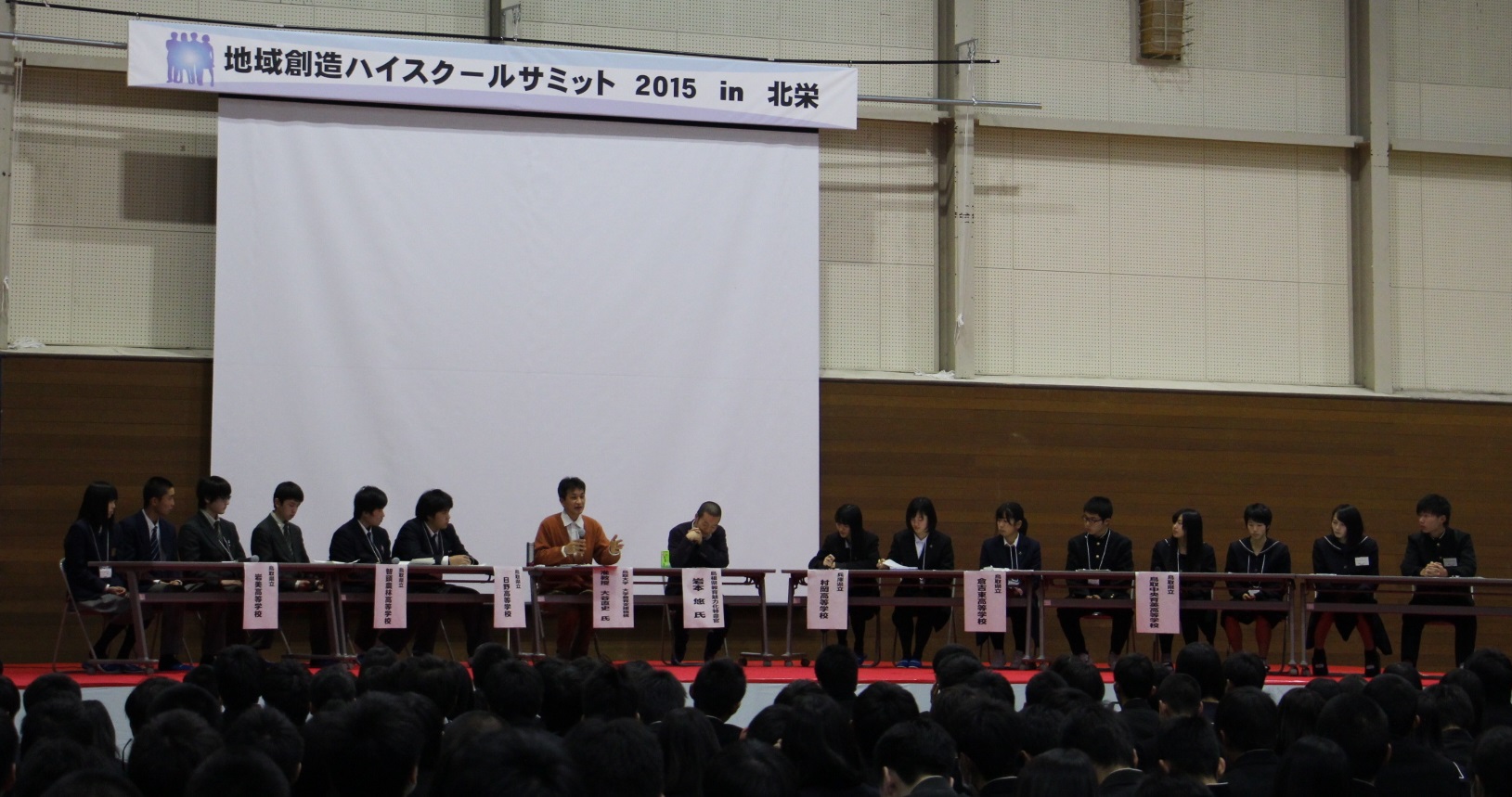 参加校はそれぞれ特色のある地域連携に取組んでおり、実践に基づいた説得力のある意見発表をしました。また、後半の討論会では鳥取大学の 大谷直史 准教授と 岩本悠 島根教育魅力化特命官のリードで、「高校生が考える地域創造」をテーマに意見交換しました。そして、閉会行事に臨んで「地域創造ハイスクールサミット2015in北栄 共同アピール」を採択することができました。