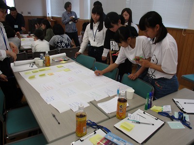 旗揚げゲームで笑いも 最後はより良い「まちづくり」のためのアイデアを出し合いました