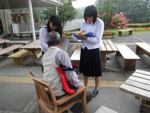 「都会から見た鳥取」は花回廊で,入場者にインタビューしていました。