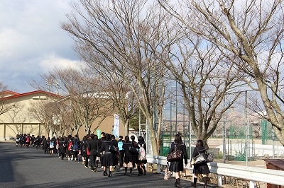 新1年生もJRに乗って登校してきました。道路に広がらず、きまりよく端を歩いていました。